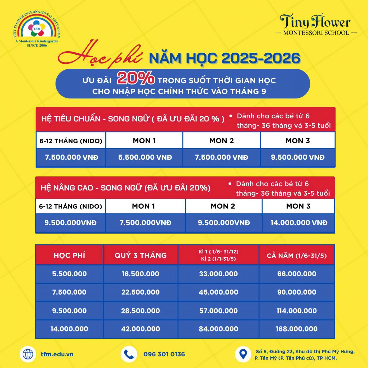 biểu phí và chính sách ưu đãi năm học 2025 -2026