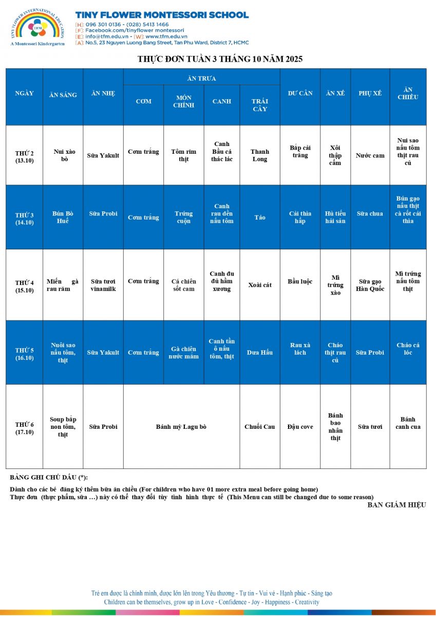 THỰC ĐƠN TUẦN 3.10 - 2025