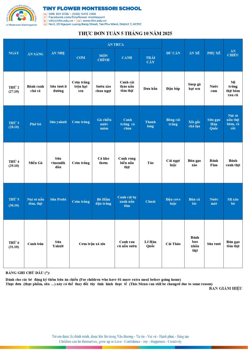 THỰC ĐƠN TUẦN 4.10 - 2025