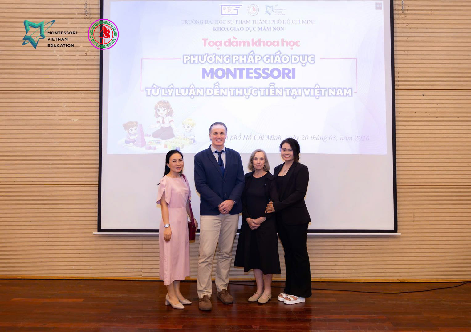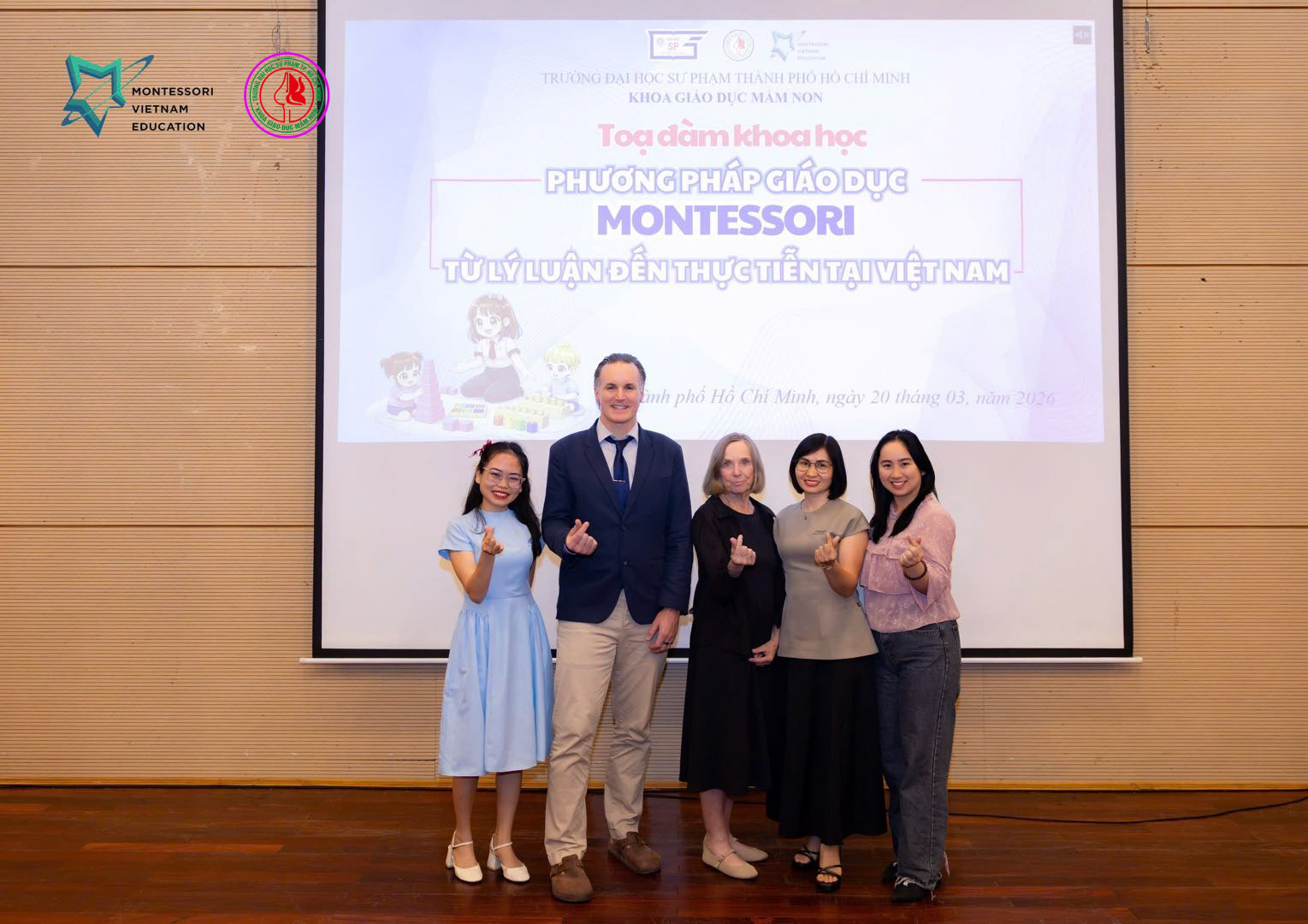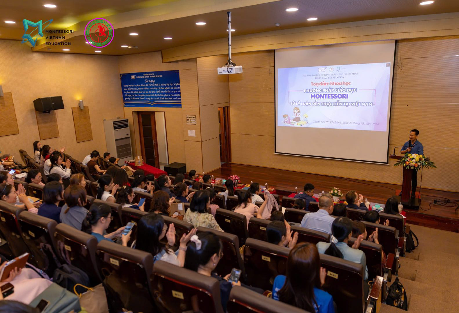 Sáng ngày 20/03/2026, Trung tâm Đào tạo Montessori Việt Nam (MVEC) và Hệ thống Trường Mầm non Tiny Flower Montessori (TFM) đã phối hợp cùng Khoa Giáo dục Mầm non – Trường Đại học Sư phạm TP.HCM tổ chức thành công buổi tọa đàm khoa học với chủ đề: “Phương pháp giáo dục Montessori: Từ lý luận đến thực tiễn tại Việt Nam”.